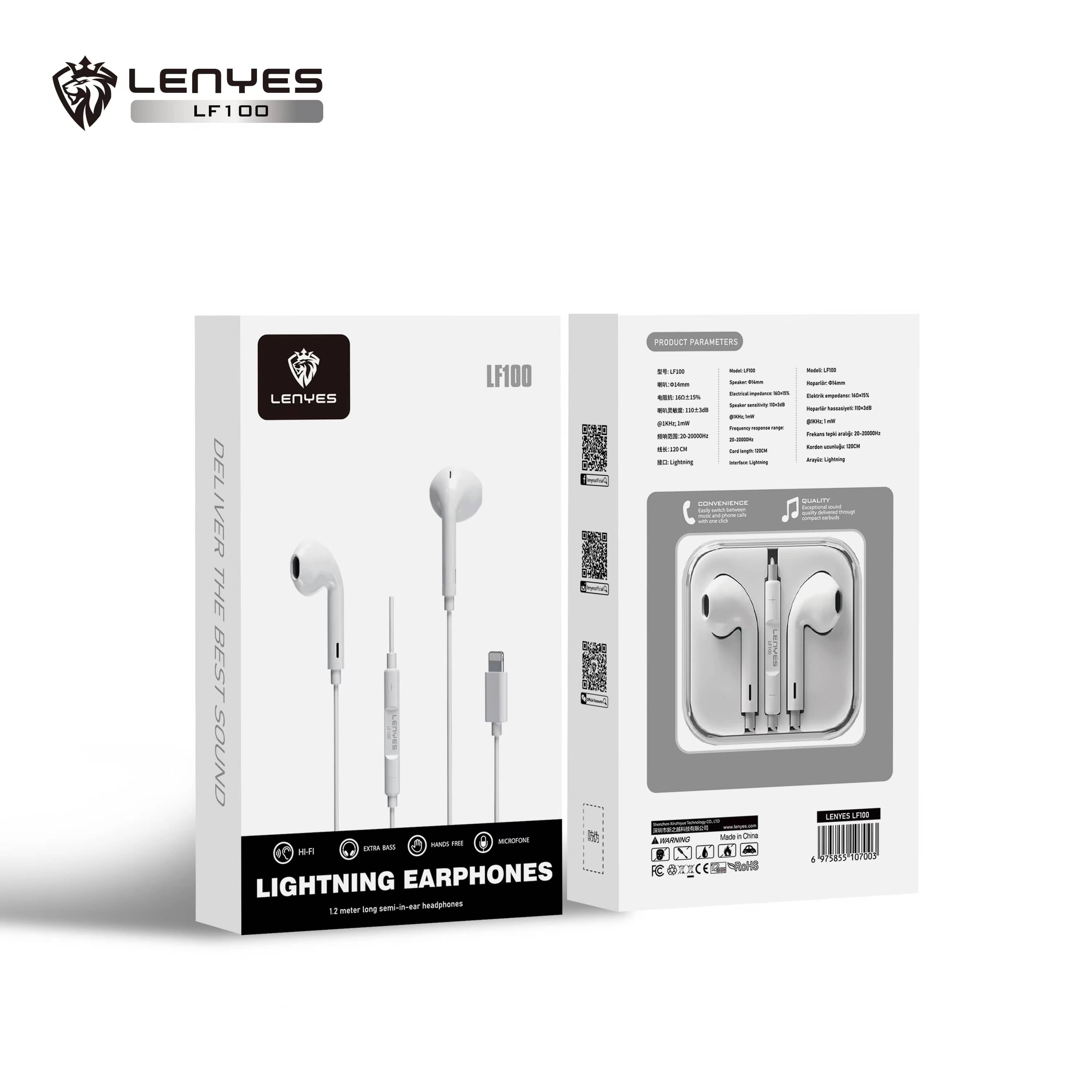 Experimenta una calidad de sonido excepcional con los Lenyes LF100, diseñados específicamente para dispositivos con puerto Lightning. Con un diseño moderno estos audífonos son perfectos para música, llamadas y entretenimiento.