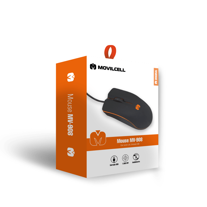 Movilcell MV908 mouse con sensor óptico que opera en todo tipo de superficies, sin perder funcionalidad, realiza hasta 1000 DPI brindando una gran precisión.